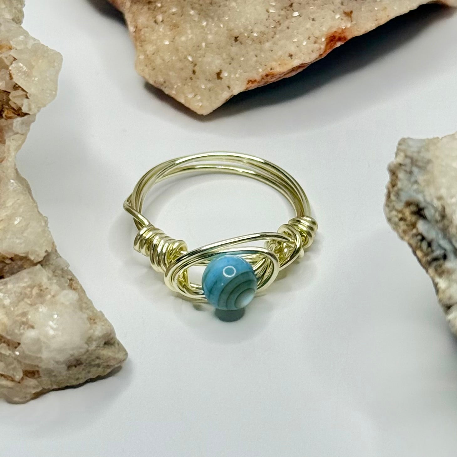 Gold Blue Lace Agate Ring