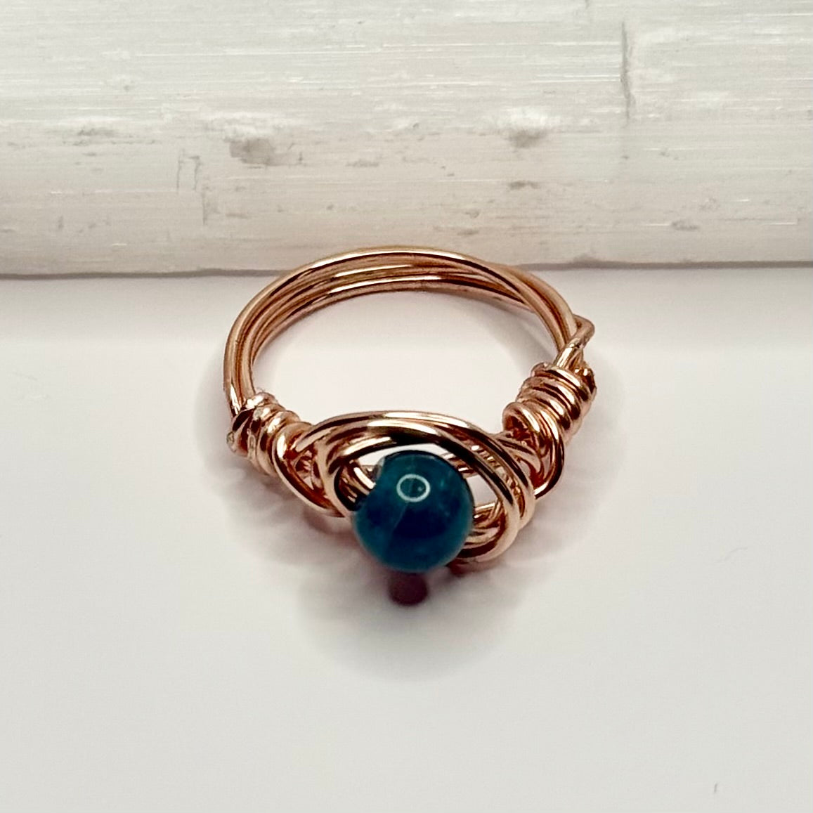 Rose Gold Blue Apatite Ring